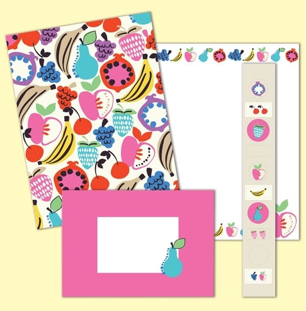 Brevsett A5, med trykt mønster, eksotisk frukt *TILBUD*