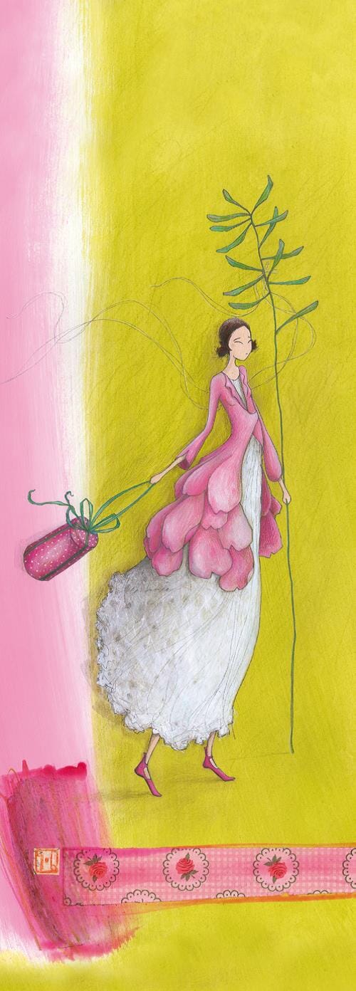 Doble kort 110x310mm, Boissonnard, rosa/gulgrønn