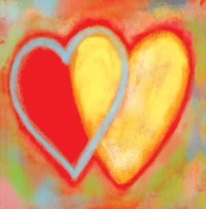 Kort "Ilustris" 16Ox16O, 2 hjerter rødt/gult