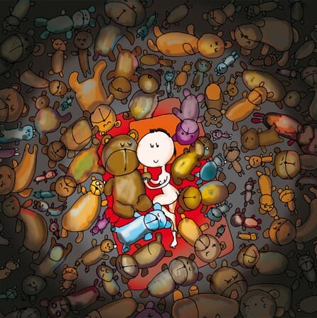 Kort "Ilustris" 16Ox16O, baby og teddybjørner