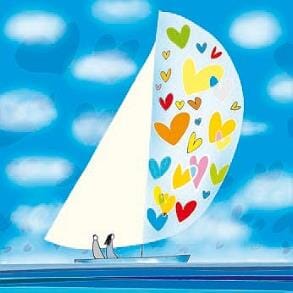 Kort "Ilustris" 16Ox16O, med hjerter i seilet