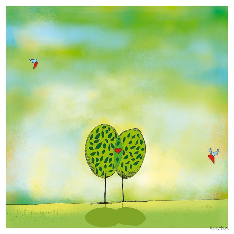 Kort "Ilustris" 16Ox16O, trær med hjerte