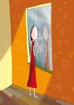 Kunstkort "Ilustris" C6, jente tegner hjerte